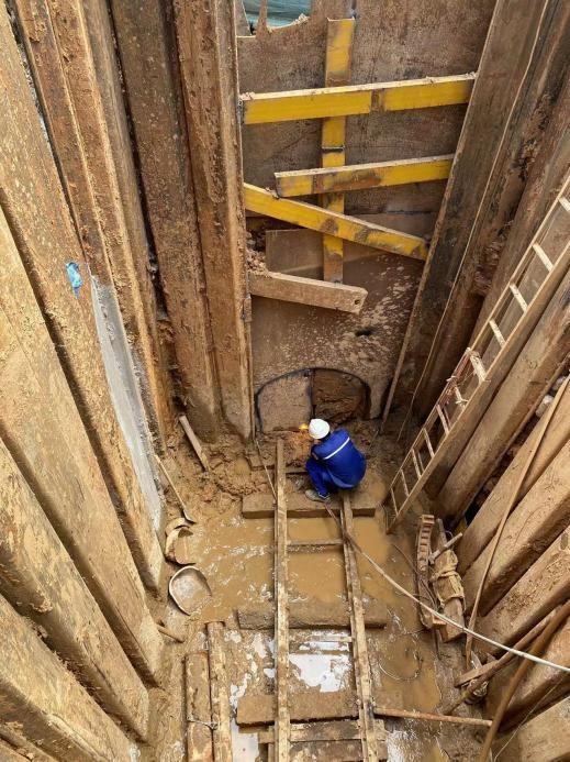 本工程因施工區(qū)域位于場內(nèi)道路兩側(cè),施工空間受限,人工頂管工作基坑開挖尺寸受限,且不能放坡開挖,并且現(xiàn)場消防水管、光纖管等既有管線多,地下水位淺,施工難度較大。定向鉆穿越施工同樣也是探明地下既有管線,按圖紙要求并考慮延長設(shè)計(jì)穿越路徑,并在穿越過程中通過傳感器發(fā)出的信號及時調(diào)整偏差,在項(xiàng)目部的精心組織和實(shí)施下,最終順利完成所有路段的管道穿越任務(wù)并交付。